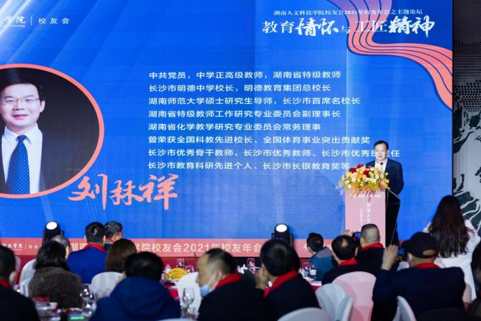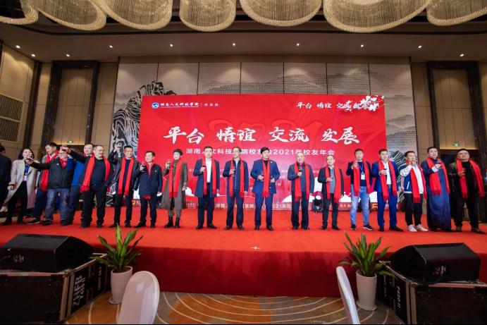 下午5点半,校友年会文艺晚会正式开始。激昂的校歌《梦想飞翔》响起,与会嘉宾全体起立,共同唱响,文艺晚会、晚宴正式开始。校长刘铁铭致辞。他代表beat365中文官方网站近两万名师生员工向与会人员表示热烈欢迎,向为此次年会付出辛劳的长沙校友会和无私提供赞助的校友们表示衷心感谢。他指出,2021年是beat365中文官方网站发展史上极其不平凡的一年。今年召开的学校第四次党代会,选举产生了新一届领导班子,并科学规划了学校十四五规划蓝图。这一年原党委书记柏连阳当选中国工程院院士,进一步提高了学校的知名度和社会影响力。这一年学科建设成就突出,目前正在建设3个国家一流专业,18个省级一流专业,5个省一流应用特色学科。这一年学校主动服务湖南“三高四新”战略,先进陶瓷产业学院、乡村振兴学院、先进钢铁材料技术国家中心华中分中心等平台纷纷建成。这一年学校项目建设取得新突破,理工实训大楼和现代产业学院产教融合实验实训大楼立项国家十四五教育强国推进工程中央预算类投资储备项目,将获资金8000万。学生新食堂和金工实习工厂在2022年将兴建成功并投入使用。这些成绩的取得离不开全校师生,校友们,社会各界的支持。他希望通过此次年会增进情谊,校友们继续支持和关心母校的建设发展。