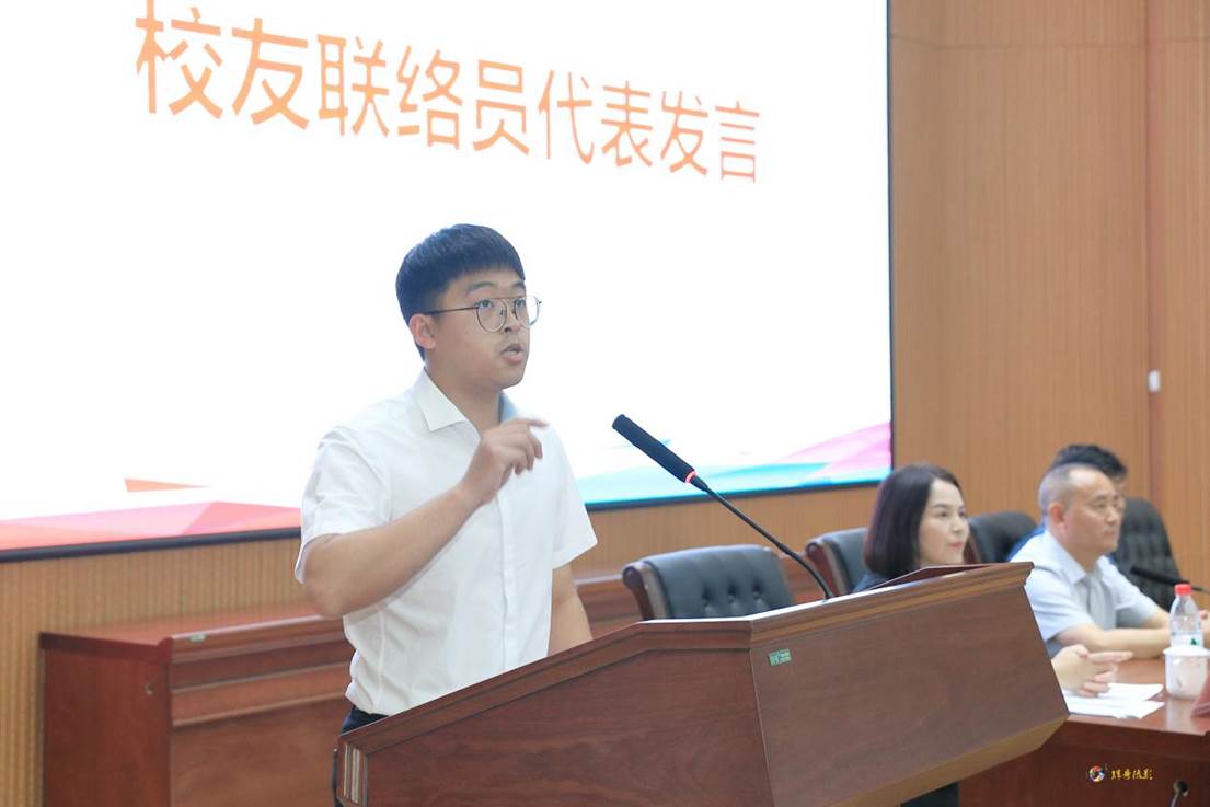 2023届校友工作联络员代表张亚琦、王瑞声分别发言并表示将牢记母校重托,认真履行校友联络员的职责。长沙校友常务副秘书长符学锋介绍了长沙校友分会的发展历程及工作开展情况,表示将一如既往支持母校,做好地方校友会的工作,服务母校、服务校友,真正做到“平台、情谊、交流、发展”。