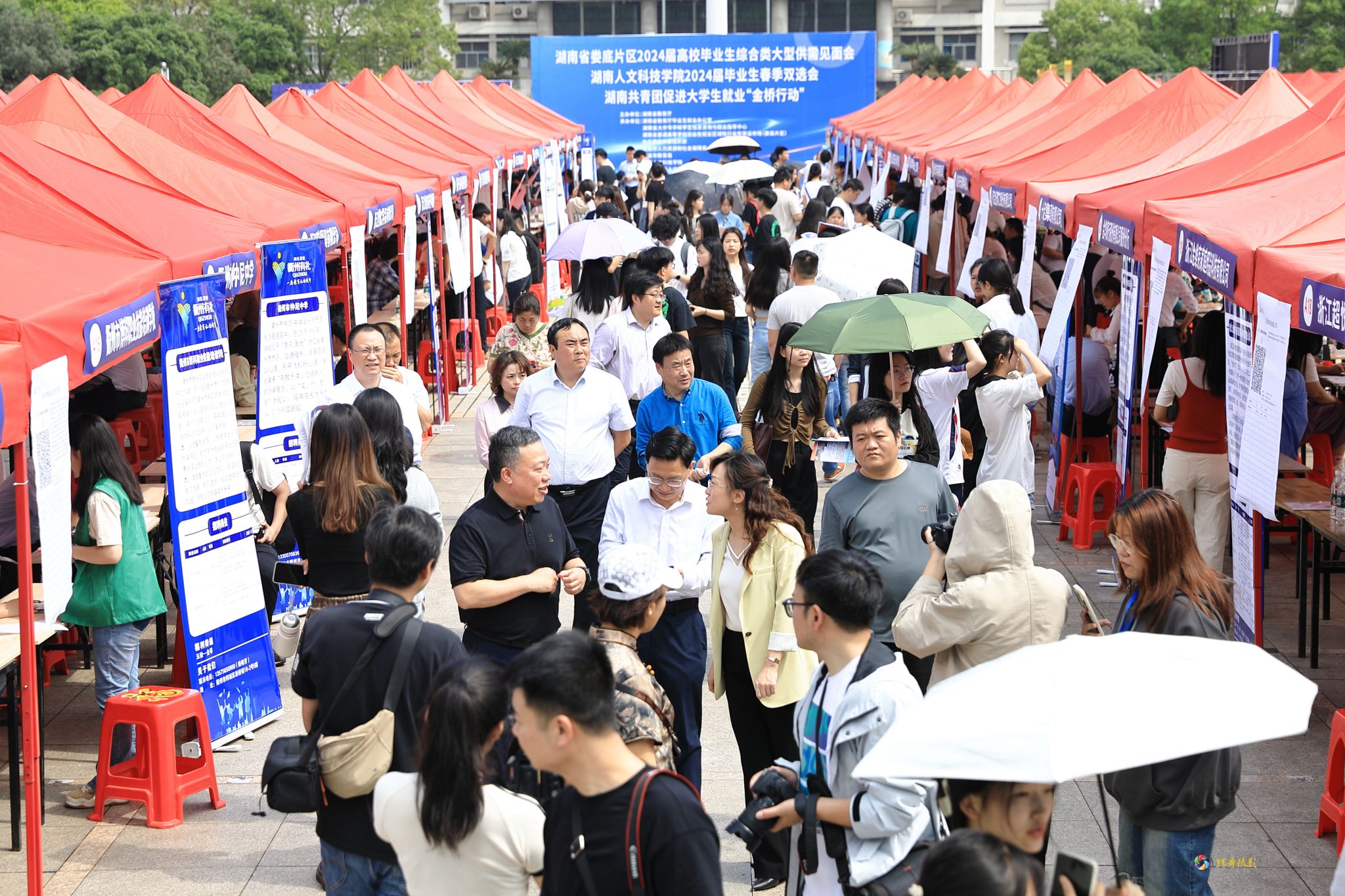4月26日,娄底地区2024届高校毕业生综合类大型供需见面会暨beat365中文官方网站2024届毕业生春季双选会在学校海园广场成功举办。
