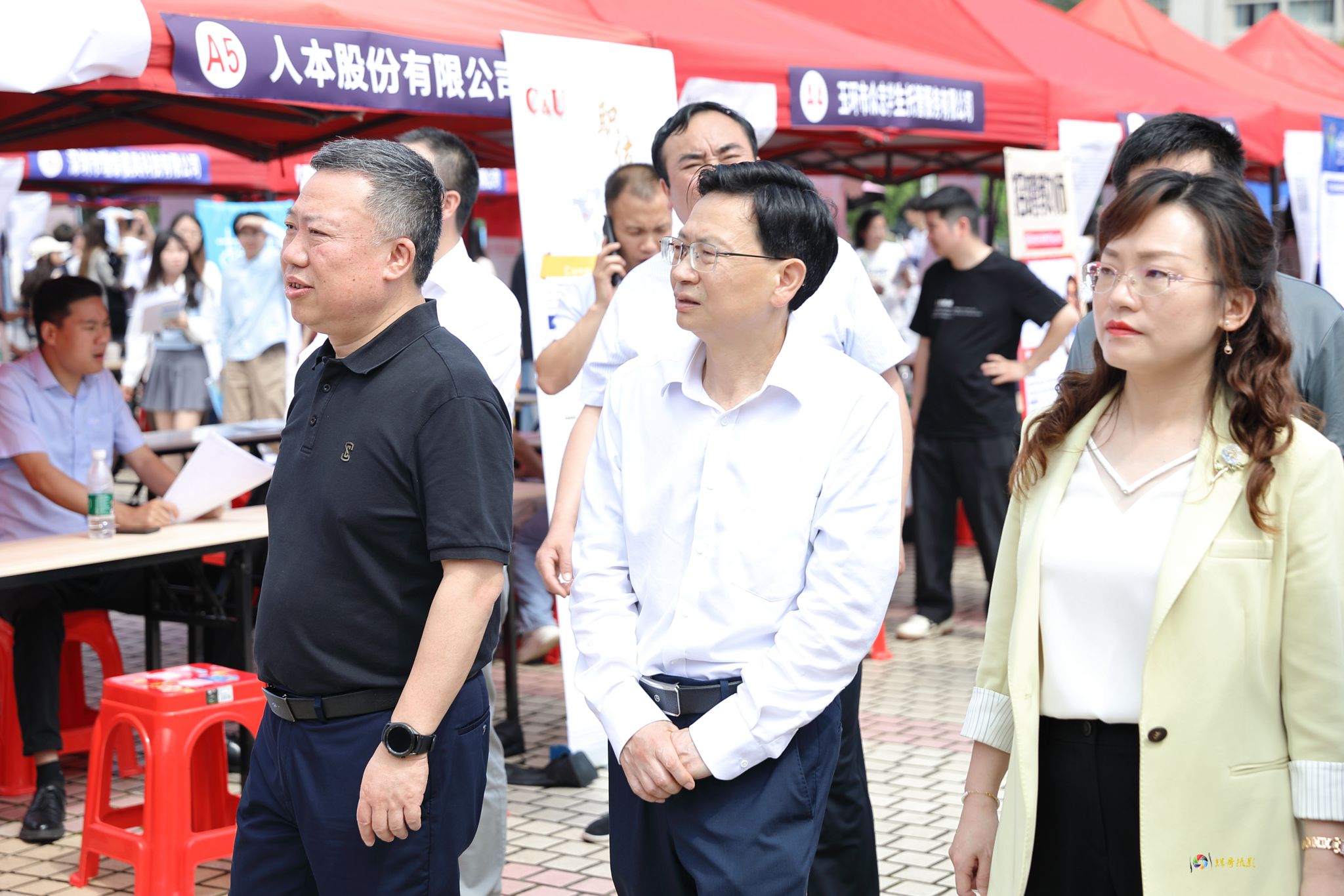 湖南省大中专学校学生信息咨询与就业指导中心四级调研员胡媛,娄底市人力资源与社会保障局党组书记、局长刘文波,学校党委副书记、校长盛明科,党委委员、副校长陈志国等领导现场指导工作,走访慰问用人单位代表,详细了解招聘情况,与毕业生亲切交流,勉励他们抢抓机遇、主动出击,尽早实现顺利就业。娄底市人力资源与社会保障局、市教育局相关负责人、学校招生就业处、校友联络中心、二级学院负责人、就业专干参会,现场指导毕业生求职。