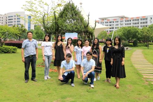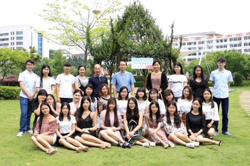(部分学生代表与文学院老师在紫薇凉亭前留影)