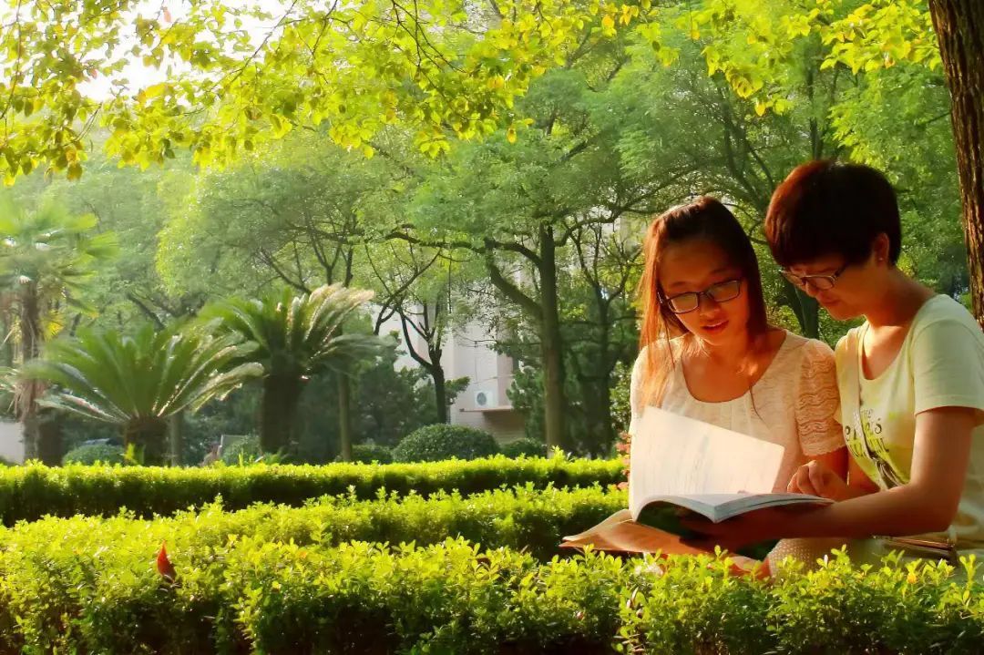 在位于校园东面的毓师园内,无论是早春还是盛夏、抑或深秋严冬,总能见到一道别致的风景。无数勤奋学习的女大学生在上课的间隙走进园内,端坐在磨菇亭下或小石墩上,时而提笔圈画,时而托腮沉思,时而小声交流探讨,那专注的目光紧紧锁住书上的文字,深深的陶醉其中。微风吹拂着她们柔顺的发丝,阳光透过树叶的缝隙,把彩霞连同斑驳的树影洒落在她们身上,满地金黄的落叶映衬着青春洋溢的脸孔,宛如为这些专注的学习者镀上一层温柔的滤镜。