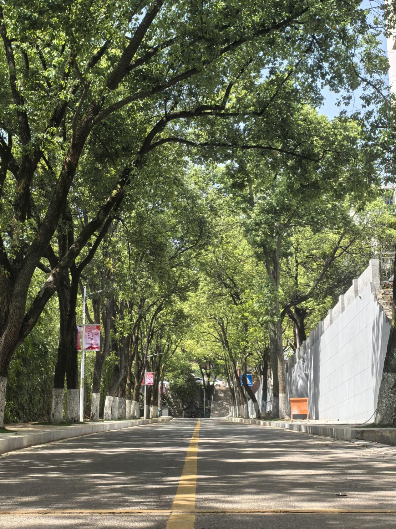 四年后的午时,我站在翻新后的林荫大道路口。那些被数人抱怨过无数次的长满苔藓的墙壁,此刻正以亮眼的石壁幕墙形态辉映着阳光。取景框突然震颤起来——是那棵有些年迈的老树,一阵微风吹过,树叶斑驳的摇曳舞姿,是晴天最好的证明,在五月印上了毕业论文的扉页。