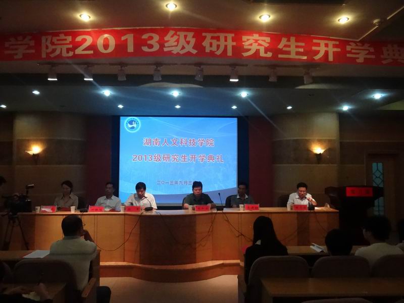 9月2日上午,beat3652013级研究生开学典礼在养根楼一楼多媒体报告厅举行。校领导郭军、刘和云、刘铁铭、蒋建初、石潇纯,硕士学位评定委员会委员,研究生导师,研究生课程教师和研究生处的同志及28名研究生新生参加了典礼。典礼由副校长陈志国主持。
