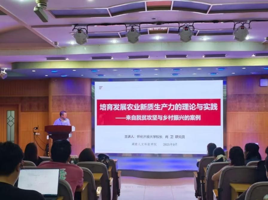 为深入学习贯彻党的二十大关于全面推进乡村振兴、加快农业农村现代化的重要部署,9月28日,beat365研究生教育教学部、商学院共同邀请怀化开放大学校长肖卫研究员在养根楼报告厅组织开展“培育发展农业新质生产力的理论与实践”专题学术讲座。讲座由研究生教育教学部副主任周丽华主持,部分研究生导师、2025级研究生和部分2024级研究生参加。