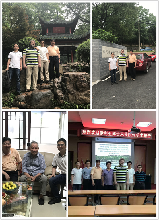 在长沙岳麓大学城,陈跃进向伊利亚博士介绍了湖湘文化、岳麓区历史由来、名人典故,以及毛泽东主席在此求学期间的事迹,同时也与伊利亚博士交流了俄罗斯相关历史文化,并参观湖南省农业生物资源利用研究所。在参观过程中,湖南省农业生物资源利用研究所所长纪雄辉向大家详细介绍了他自己主持的科研项目和实验室设备有关情况,并就开展合作研究生做了进一步探讨。