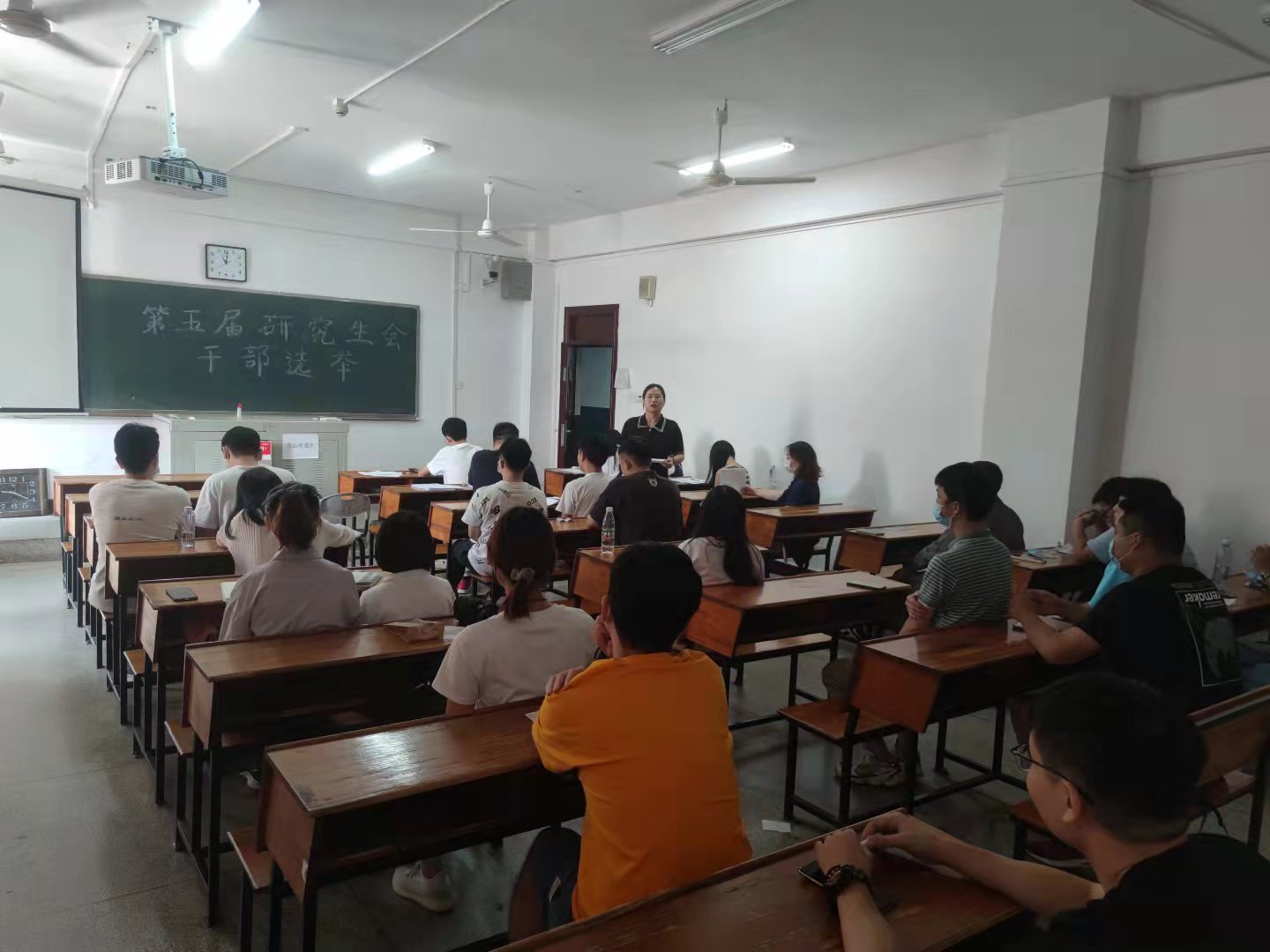 依据公开、公平、公正,惟德惟贤,能者居上的原则,通过师生评委打分的方法,经过两个半小时的激烈角逐,最终确定了第五届研究生会干部名单和2021级研究生大班长人选。