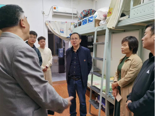 图2 刘建勋副校长查看研究生的寝室布置