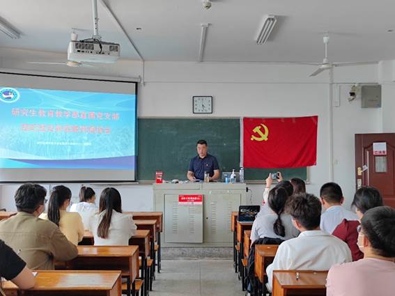 支部副书记向瑞桃向研究生党员通报了省外、省内及校内违反师德师风典型案例,并告诫所有研究生党员须以案为鉴、引以为戒,做到举一反三、廉洁修身,反躬内省、牢筑拒腐思想防线,要时刻以党章党纪严格要求自己,努力争做新时代国家伟大复兴路上的领跑人。