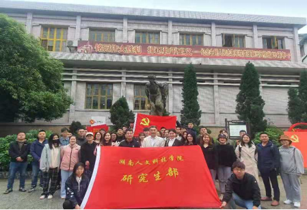 为进一步推进党史学习教育活动深入开展,弘扬爱国主义精神,传承红色基因,2021年4月26日,beat365中文官方网站研究生教育教学部彭健民书记带领全体研究生前往新化罗盛教纪念馆进行主题党日活动、接受党史教育。
