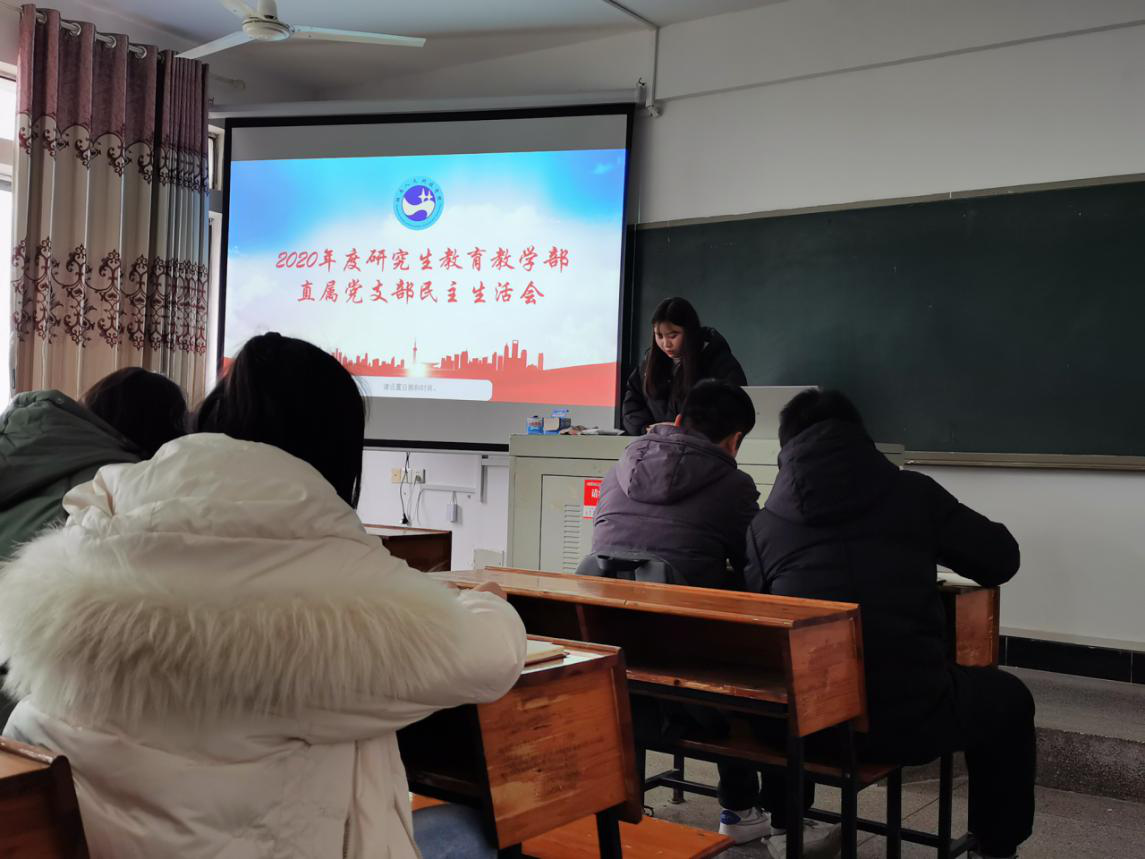 为进一步严格党内政治生活,增强党组织活力,加强学生党员教育管理,1月5日下午,研究生教育教学部直属党支部召开2020年度组织生活会,会议由支部副书记向瑞桃主持。
