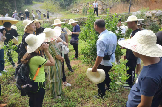 在水蜜桃和柑橘种植基地,技术员讲述了油溪桥村发展农业产业所遇到的问题及解决方案,同学们积极思考并提问。现场教学让同学们对石灰岩地区的农业产业发展现状有了十分直观的认识,对于同学们后续的学习十分重要。