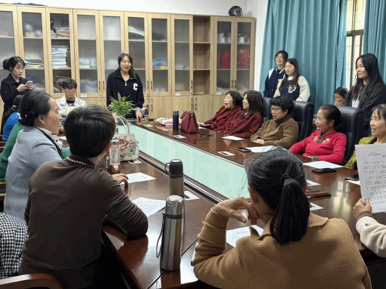 在项目负责老师朱璐的指导下,志愿者们充分发挥专业优势,为社区居民量身订制了系统的音乐入门课程。从科学的发声练习到趣味的节奏训练,辅以钢琴现场伴奏,志愿者们用专业与耐心,一步步引导老人们走进音乐的世界。当《映山红》等经典旋律被深情合唱时,现场洋溢的不仅是歌声,更是跨越年龄的温暖与感动。