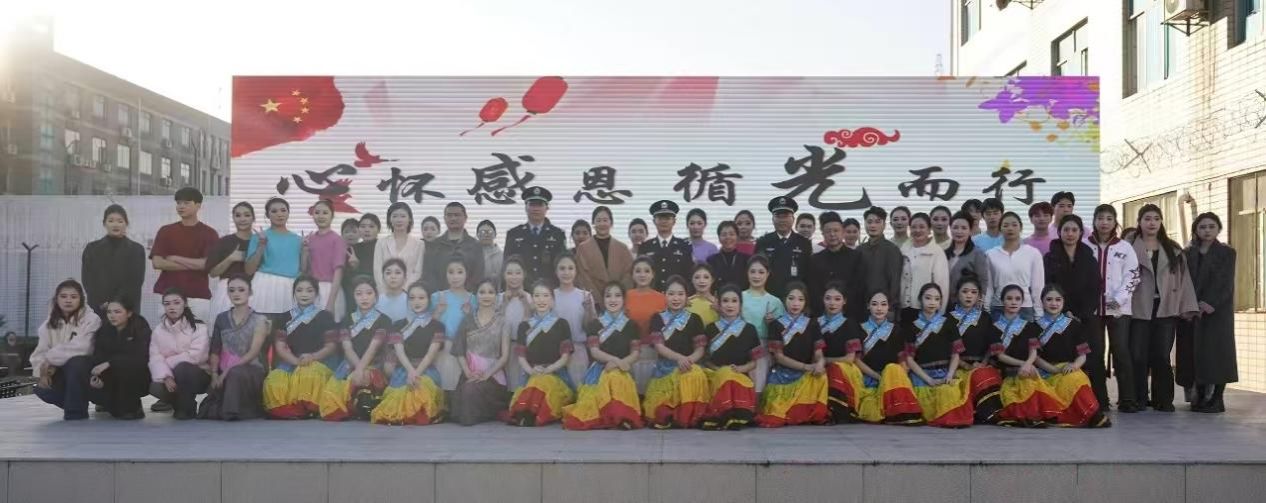 整场演出形式多样,内容丰富。演出开始前,监狱相关领导曾来院与学院领导,就演出具体事宜进行了深入而细致的讨论,希望可以选取具有一定艺术水平的音乐舞蹈艺术的作品呈现给观众。刘利连院长也表示,学院非常重视此次演出,既精选了学院优秀的师生完成本次活动,也挑选了格调高雅、内涵丰富、技术成熟的音乐舞蹈作品参加此次文艺汇演。演出当天,我院师生以歌曲、舞蹈、器乐演奏等多种艺术形式为现场带来一场文化盛宴。当演出开始时,服刑人员都睁大双眼,看向了舞台。当音乐舞蹈作品进入到他们的生活中时,有的服刑人员甚至感动哭了,表现出了更好的情绪、更强的同理心。“我们并非是培养艺术家,”刘院长说道,“而是在帮助每个人发现内心的声音,并用这种声音与自己、与他人、与世界建立更健康的连接。”当节目的旋律响起时,身体的舞动与心灵的蜕变同步发生。在这方特殊的空间里,音乐与舞蹈的作品不仅是艺术,更是通向理解、责任与希望的桥梁——每一次律动,都是对人性复元的坚定信念。