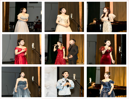 音乐会上,12 位学生采用美声、民族、通俗三种演唱方式,演唱了 16首风格不同、内容广泛、题材多样的经典声乐作品,引起了现场观众的广泛共鸣,赢得了大家的阵阵掌声。此次音乐会是继605实训室和小音乐厅演出之后,两位老师在本学期举办的第三场声乐实践教学音乐会。学生们在老师的精心指导下,反复打磨演唱作品;在不断进阶的演唱环境中历练,提升演唱基本功和艺术素养;在一次次的走台、彩排和演出实践中,锻炼舞台适应能力和心理抗压能力。经过一个学期的实践教学,从音乐会的现场效果来看,学生的作品感悟力、演唱控制力,舞台表现力、自信心和台风都有了大幅度的提升。