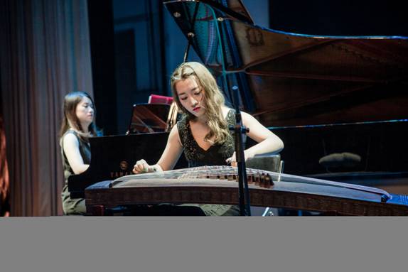 首先上场的是涂慧同学的独奏《晓雾》,优美的旋律一出来就瞬间抓住了观众的注意力,通过演奏的方式,引起听众对京城生活情调的联想,幻想出一幅朦胧,飘渺的晨雾美景。而后又为观众带来了一曲《溟山》,将古筝和鼓伴者阮兆东完美配合,使得曲子在演奏上有了一种新的突破,一曲结束后,赢得了观众的阵阵掌声,将气氛推至高潮。