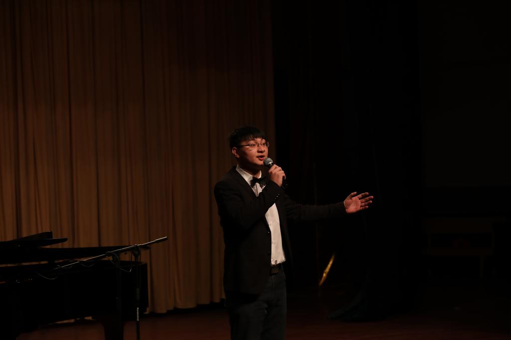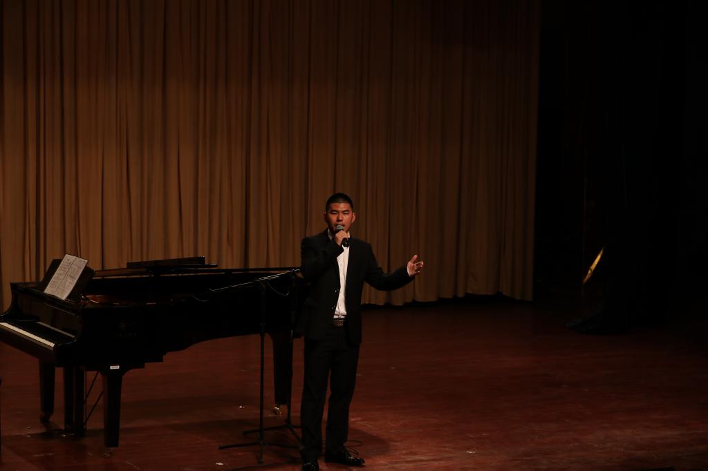 “候南南、李金、胡兴宇、姜西阳、白赞、徐飞、张文婷、林智旺”(声乐专场)音乐会由候南南、李金、胡兴宇、姜西阳、白赞、徐飞、张文婷、林智旺八位同学共同主办。指导老师为梁金平、杨鉴、王超群、陈文辉四位老师。同学们分别演唱了《圪墚墚》、《北大荒人的歌》、《喀什葛尔女郎》、《穿越时空的思念》、《草原夜色美》、《那就是我》、《战士为国守安详》、《儿行千里》、《乡音乡情》、《西班牙女郎》、《滚滚长江东逝水》、《踏雪寻梅》、《沂蒙山小调》、《长鼓敲起来》、《天边》、《我爱这蓝色的海洋》、合唱《我和我的祖国》17首曲目,在各位领导老师的支持与鼓励下,音乐会取得了圆满成功!