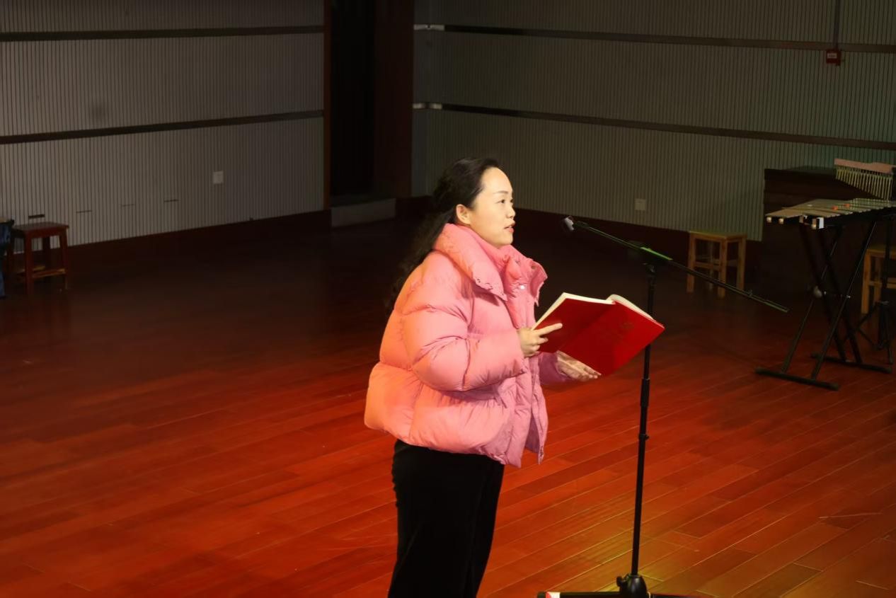 音乐会伊始,主持人登台致开场词,明确本次音乐会是2023级音乐学一至四班课程学习成果的集中展示,也是同学们对未来学校音乐教育和学校美育工作的探索与预演。
