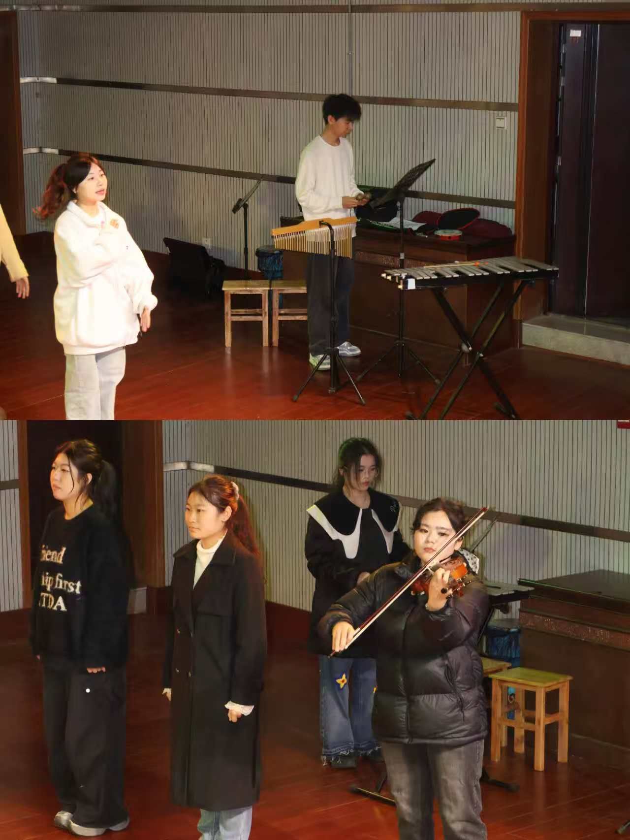 12月23日晚,《音乐课程与教学论》课程结业汇报音乐会在逸夫楼小音乐厅顺利举办。本次音乐会,以中小学音乐教材创意编排为核心,体现了该课程在教学内容、教学方法、教学评价等方面的创新性改革,该课程打破传统考核与评价方式,打通具体能力与职业需求的壁垒,充分契合学校高质量应用型人才培养目标,有效达成学院培养中小学合格音乐教师,为社会输送高质量美育师资的人才培养目标。莅临指导和观摩的嘉宾有:音乐舞蹈学院党总支书记刘纲华、分管常规教学副院长颜春英副教授、器乐教研室主任石瑾副教授、钢琴教研室主任李歆副教授,并特邀星星实验学校优秀音乐教师杨帆老师担任点评专家。