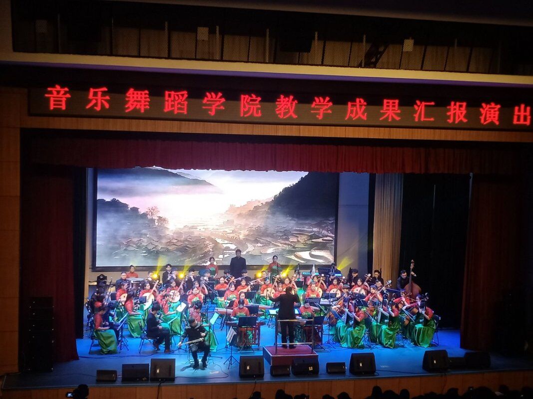 12月4日,音乐舞蹈学院在逸夫楼音乐厅成功举办了教学成果汇报演出。本次演出由音乐舞蹈学院主办,班子成员集体策划,各教研室积极参与,各部门及学生会干部通力合作,精心编排的晚会。学校领导、机关单位和二级学院的中层领导,音乐舞蹈学院全体教师及其他学院的部分同学近700人观看了演出。