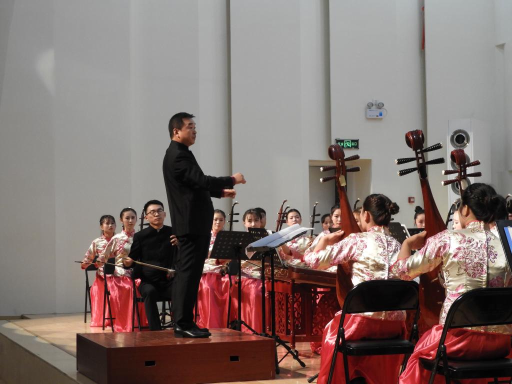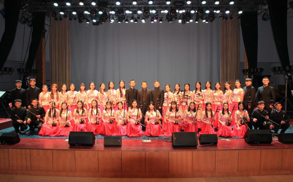 音乐舞蹈学院民乐团在各级领导的亲切关怀与帮助下,不断地发展壮大,历经十年的风雨打拼,乐团由原来的20人左右发展到现在的50余人,并逐渐形成了自已的演奏风格与建团特色,如今已发展成一支建制较为齐备,师生共同参与,颇具一定规模,小有影响力的高校民族管弦乐团。乐团现有团长兼常任指挥1人,客席指挥兼配器1人,副团长1人,民乐团不仅是音乐舞蹈学院推进教育教学改革的有力抓手,也是应用型人才培养的实践基地,器乐合奏课的教学载体,更是师生进行艺术实践和展示专业教学成果的有力平台,相信每一个团员都将在这里绽放出动人的艺术风采。
