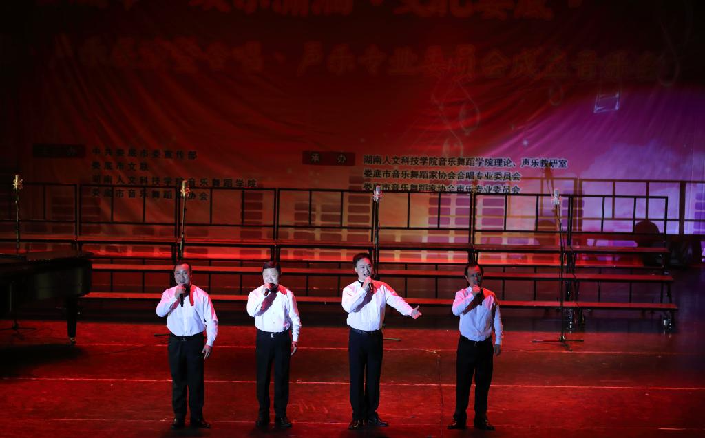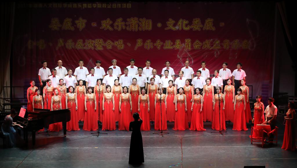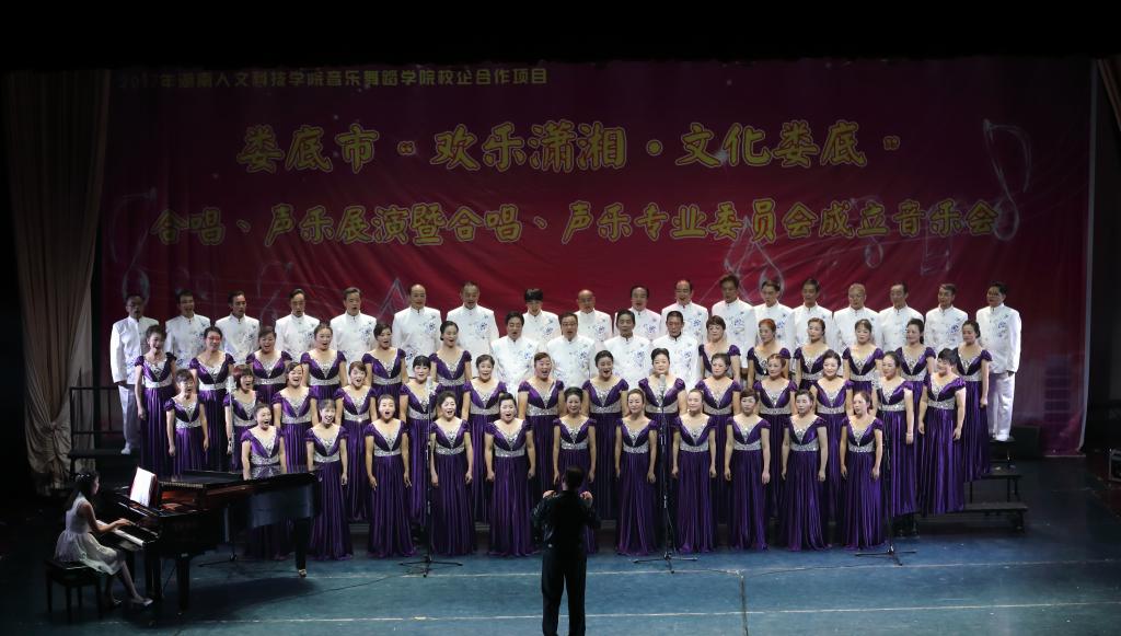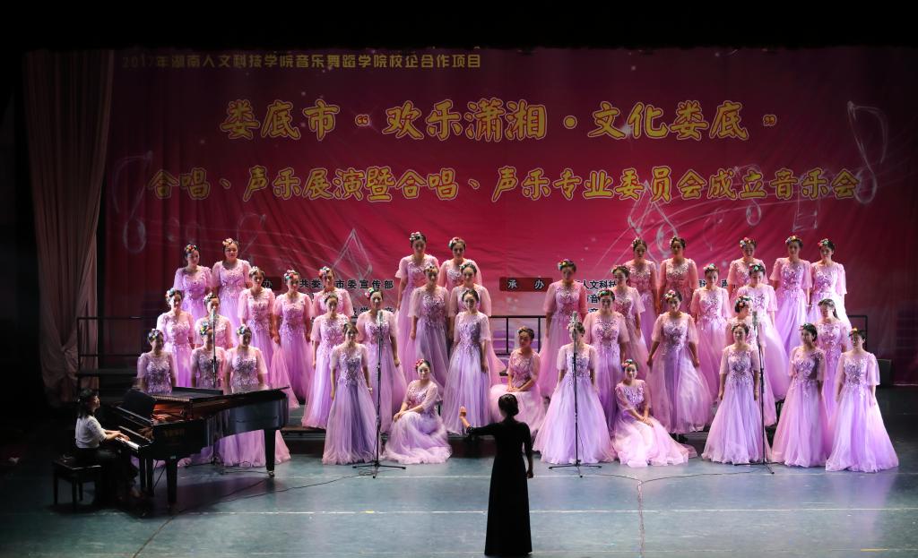 2017年6月15日晚七点半,由中共娄底市委宣传部、市文联、beat365中文官方网站音乐舞蹈学院、市音舞协会主办,音乐舞蹈学院理论、声乐教研室,市音舞协会合唱、声乐专业委员会承办的2017年娄底市“欢乐潇湘,文化娄底”合唱、声乐展演暨市音舞协会合唱、声乐专业委员会成立音乐会在我院音乐厅举行,市宣传部、市文联、市文广新局、beat365中文官方网站相关领导观看了音乐会。