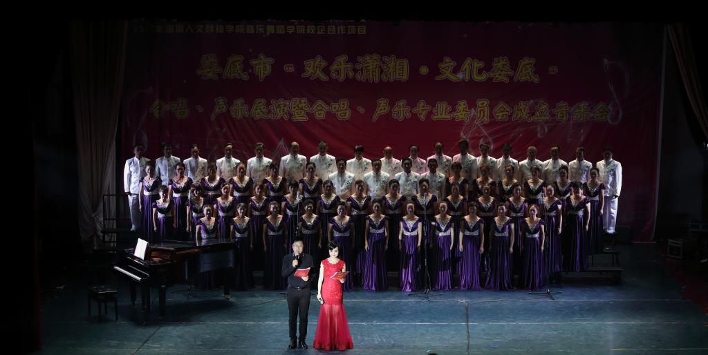 这场音乐会是娄底市“欢乐潇湘,文化娄底”活动之一,更是音乐舞蹈学院的校企合作项目,这期开学之初,就开始策划本次音乐会。娄底市中艺合唱团、紫月亮女声合唱团、金音合唱团、音乐舞蹈学院合唱团、女声合唱团,及部分娄底市优秀青年歌唱演员、优秀声乐教育工作者参加了演出。含混声合唱、女声合唱、独唱、二重唱、小组唱等表演形式,演唱了合唱《龙的传人》、《香格里拉》、《九儿》、《我们是运河流水》独唱《暑色》等曲目,音乐会取得了圆满成功。