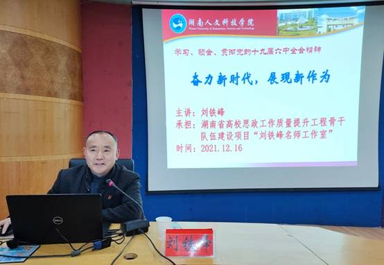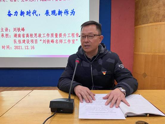 为宣讲十九届六中全会精神,进一步加强音乐舞蹈学院的思想政治教育,12月16日,刘铁峰副校长在养根楼报告厅上了《奋进新时代,展现新作为》的党课。音乐与舞蹈学院的全体师生党员聆听了党课,音乐舞蹈学院党总支书记刘纲华主持。