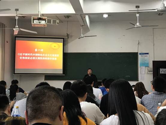 本期培训以学习习近平新时代中国特色社会主义思想和十九大精神为重点,进行党的历史和优良传统、基本理论、基本路线、基本方略和社会主义核心价值观教育。周书记强调“要把握学习的重点,通过培训学习,增强自己的责任感和使命感,深化对党的认识,增进对党的感情,坚定理想信念,提高党性觉悟,坚定道路自信、理论自信、制度自信和文化自信,增强政治意识、大局意识、核心意识、看齐意识,端正入党动机”。周邦春书记用他二十年的工作经验和丰富的人生阅历,在课上游刃有余得诠释出了各个观点,同时对学生党员发展对象提出的问题做出细心、严谨,耐心的解答,让授课同学受益匪浅。在本次党课上,周邦春书记回顾了我党光荣的艰辛岁月,让广大学生党员感悟今天生活的幸福,鞭策大学生努力学习奋斗,增强大学生的爱国热情和振兴祖国的责任感和使命感,对学生党员发展对象有重大的教育意义,他的一言一行,对一个学生党员的发展都起到了无可比拟的导向作用。