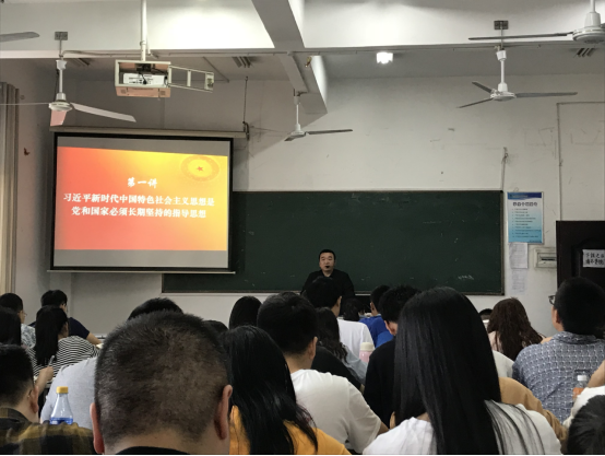 本期培训以学习习近平新时代中国特色社会主义思想和十九大精神为重点,进行党的历史和优良传统、基本理论、基本路线、基本方略和社会主义核心价值观教育。周书记强调“要把握学习的重点,通过培训学习,增强自己的责任感和使命感,深化对党的认识,增进对党的感情,坚定理想信念,提高党性觉悟,坚定道路自信、理论自信、制度自信和文化自信,增强政治意识、大局意识、核心意识、看齐意识,端正入党动机”。周邦春书记用他二十年的工作经验和丰富的人生阅历,在课上游刃有余得诠释出了各个观点,同时对学生党员发展对象提出的问题做出细心、严谨,耐心的解答,让授课同学受益匪浅。在本次党课上,周邦春书记回顾了我党光荣的艰辛岁月,让广大学生党员感悟今天生活的幸福,鞭策大学生努力学习奋斗,增强大学生的爱国热情和振兴祖国的责任感和使命感,对学生党员发展对象有重大的教育意义,他的一言一行,对一个学生党员的发展都起到了无可比拟的导向作用。