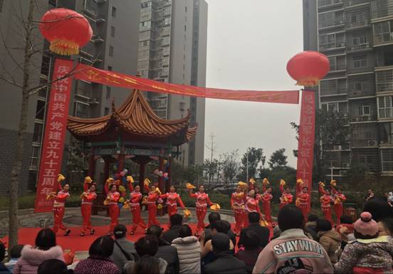 文艺汇演由红红火火的群舞《秧歌》开始,表演舞蹈的党员们同志穿着大红喜庆的衣裳,拿着黄色的手帕,随着热烈的音乐起舞,观众们很快融入了汇演的气氛,现场迅速沸腾了起来。