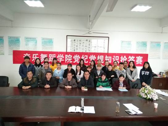 2016年11月1日下午,音乐舞蹈学院党纪党规知识竞赛在逸夫楼会议室举行,党总支书记陈功平、党总支副书记周邦春及全体总支委员、支部书记出席了本次竞赛活动,比赛由常丹青主持。