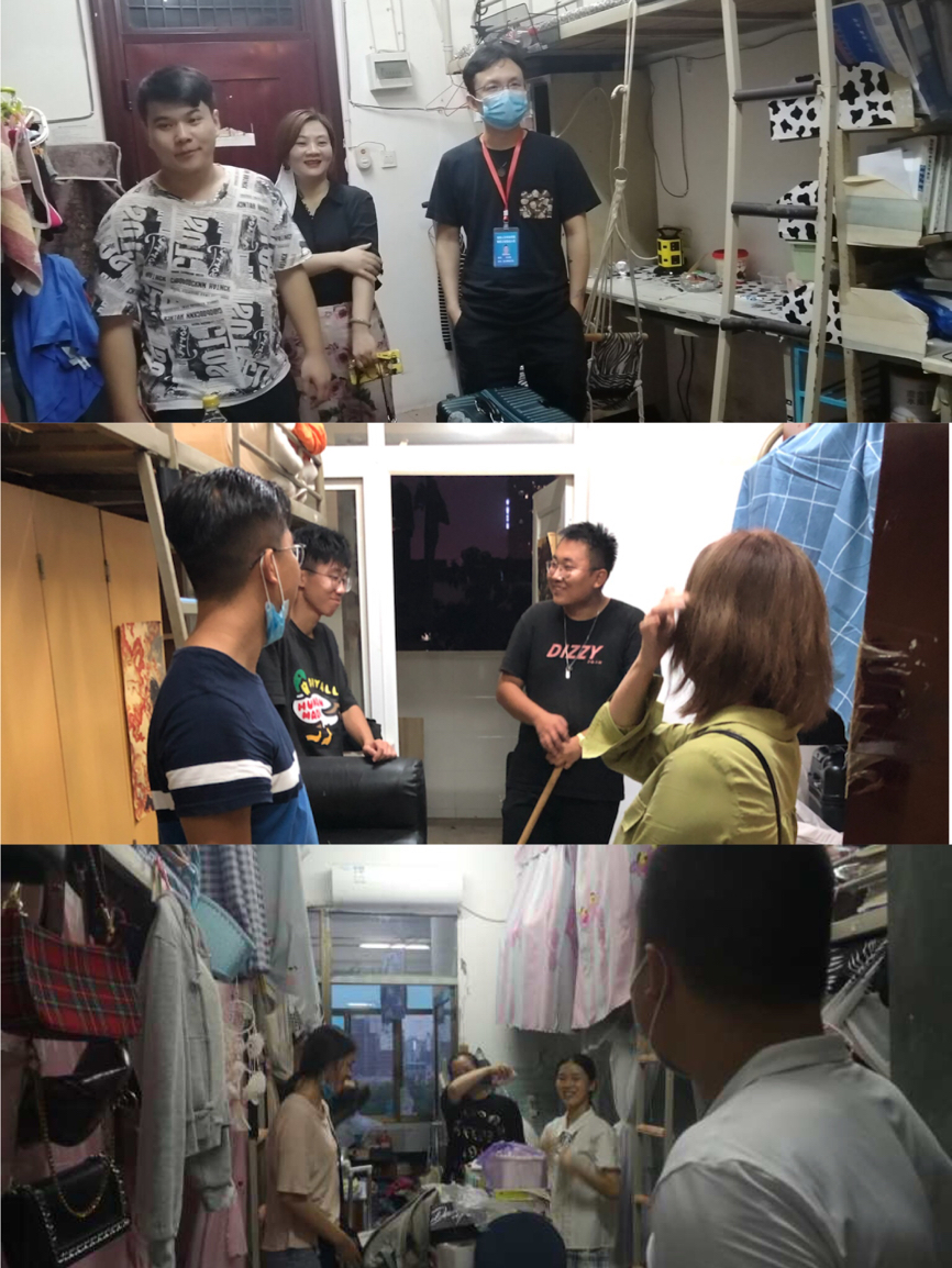 为深入了解学生到校情况,做好开学后防疫工作,202095日晚,音乐舞蹈学院周邦春书记和邓莉立副书记携全体班主任下寝检查工作,此次活动主要走访了阳光公寓1栋、阳光公寓6栋、9栋、16栋寝室,关心慰问刚返校的17级、18级、19级学生。