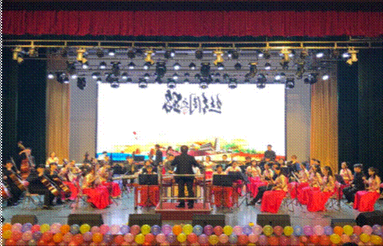 晚会开场,乐声响起, 迎新晚会在民族交响乐团演奏的《丝绸之路》下拉开序幕。“春风不度玉门关,无数铃声过遥碛”,古韵,琵琶,大漠,驼铃,落日,苍茫,岁月,落寞,广阔无垠,落霞满天,恢宏大气。整场演奏充满着浓郁的丝路风情,荟萃了交响乐团对本次晚会的美好祝福。文字是语言的延伸,那些无法言表的情感都可归属为一段词,几行诗。而歌曲则赋予了文字以生命,让这些诗词变的鲜活而饱满,更轻易的打动人心,歌曲《父亲写的散文诗》,深情诠释了这首时光流淌后凝结出的父爱之诗。随后,乐起舞动,微情射的开场舞《小猪佩奇》,调动了全场气氛,一下就给了在场观众一种震感。演出同学那娴熟而动感的舞步、相互之间的配合以及他们与音乐完美的融合,无不感染在场的所有观众,牵动着每一颗观众的心。匆匆忙忙的青春岁月,留下太多的梦。那些年冒险的冲动都是以后的回忆,歌曲《那些你很冒险的梦》正是如此,典型的林俊杰情歌,优美的声线加变化莫测的R&B旋律,演绎了那些年我们为了一个人或一件事做过冒险的事。两位演唱者将这个梦用歌声演绎的淋淋尽致,诠释了那个冒险的青春、冒险的梦。高粱熟了红满天,九儿我送你去远方”优美的句子陪着优美的舞姿,还有一群舞蹈专业的学生扎实的基本功和相互之间配合的默契,《九儿》被演绎的淋淋尽致,一个接一个双飞燕、大跳,留头转身再留头在转身,优美的舞姿在空中划出一道道优美的弧线。