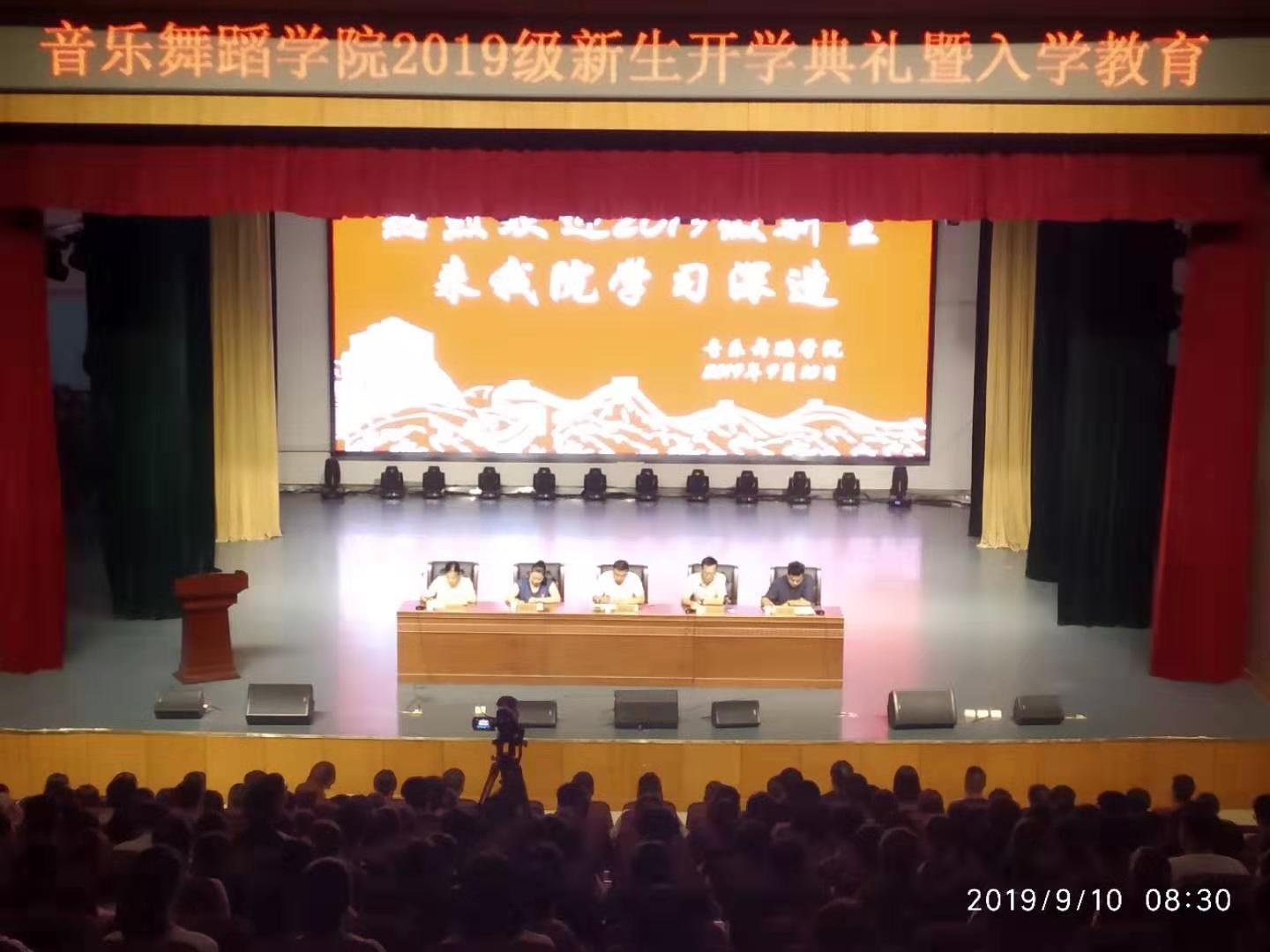 乘风远航新征程,春华秋实绘佳卷。2019年9月10日早上8点,在这个教师节来临之际,beat365中文官方网站音乐舞蹈学院组织新生在逸夫楼音乐厅召开19级新生开学典礼暨入学教育大会。音乐舞蹈学院院长谢坚强、党总支书记周邦春、副院长吴扎拉·涛、副院长刘利连和党总支副书记邓莉立出席本次大会。