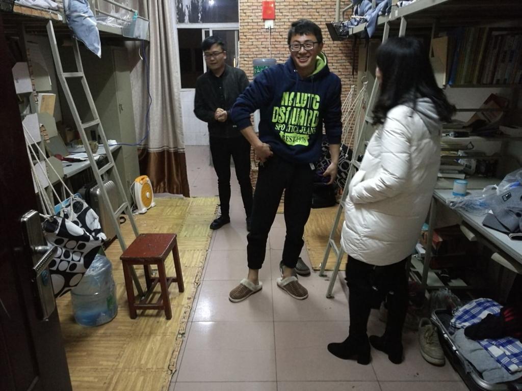 由于寒假各宿舍安装了空调,老师认真询问同学们空调的安装及使用情况以及宿舍其他设施上遇到的问题,又跟同学们分享了自己上大学时的宿舍生活,这不禁让同学们感到格外的亲切,原来的拘束一下子就减去了不少。他们也开始跟老师们分享自己在这里住宿的感受以及提了一些自己对宿舍的意见。在离开时老师们也给同学们提了几点希望:第一,在大学努力提高自己的综合素质,要全面发展。第二,充分调整自己的内在知识结构。第三,要自信,要相信自己在经过大学的历练后会有更加精彩的人生。