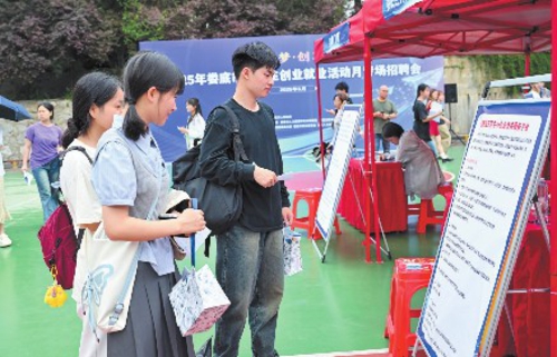 线下活动现场划分四大功能区域,形成完整的就业服务链条。在企业招聘专区,来自各个行业的58家优质用人单位累计带来1000余个岗位。智慧就业服务区通过“互联网+”技术实现岗位智能匹配,求职者扫码即可获取企业信息并完成简历投递。政策宣传区通过可视化展板、发放政策指南手册,集中解读创业担保贷款、税收优惠等扶持政策。就业创业指导区由4位专业导师开展“一对一”求职咨询服务,累计接待学生50人次。