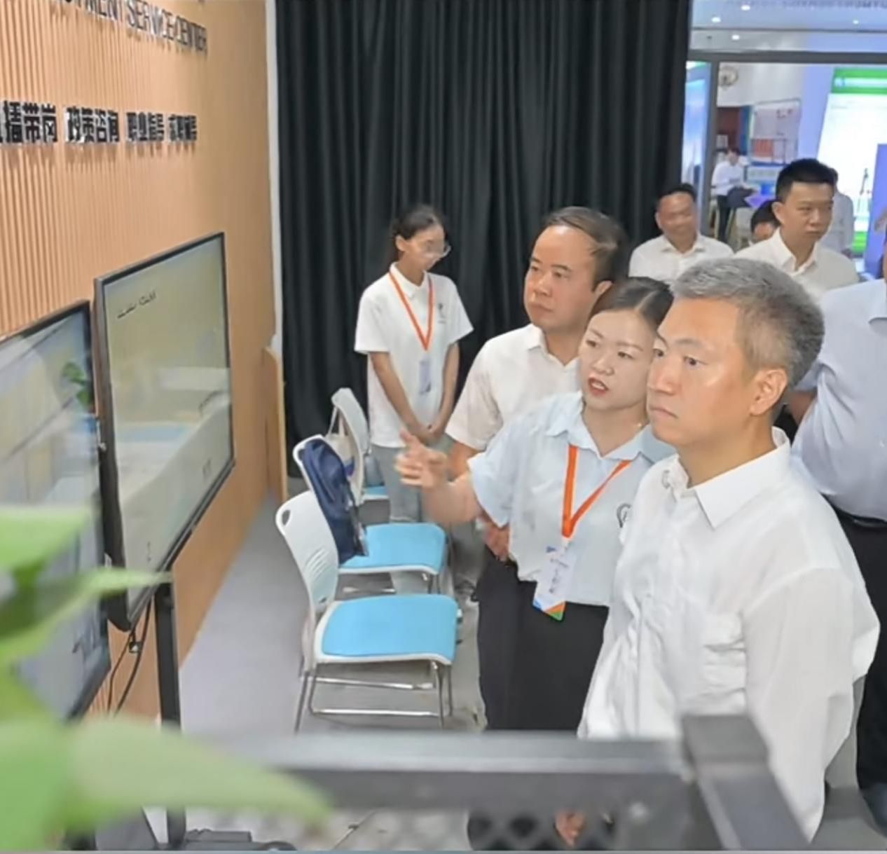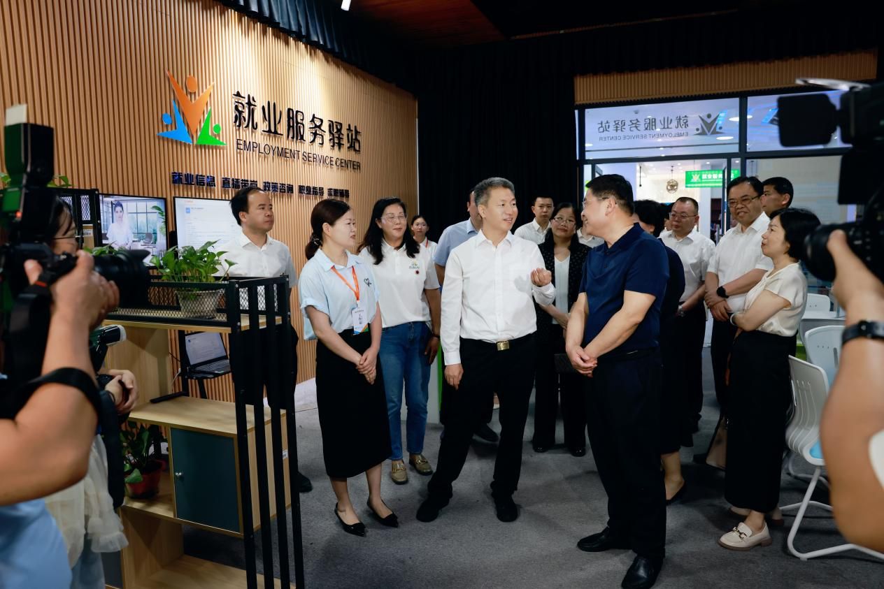 考察过程中,招生就业处处长刘红燃向曾超群书记重点介绍了就业驿站的特色运行机制。就业服务驿站由娄底市人力资源和社会保障局与学校共建,是湖南省内高校首家一站式就业服务场所,驿站内设有学生实践岗位,由经过培训的在校实习生负责日常招生电话咨询工作,有效提升了学生的实务能力与服务意识。驿站还依托红海人力,创新引入AI大数据分析平台,对海量就业信息进行智能筛选与精准匹配,显著提升了岗位推荐的效率和成功率。刘红燃还汇报了学校在拓展就业渠道方面的努力,本学期已成功举办多场线上线下招聘会,为数千名毕业生提供了丰富的就业机会,通过驿站获得直接就业帮扶的应届毕业生数量持续增加。在全校共同努力下,今年毕业生就业率较去年同期稳步提升。