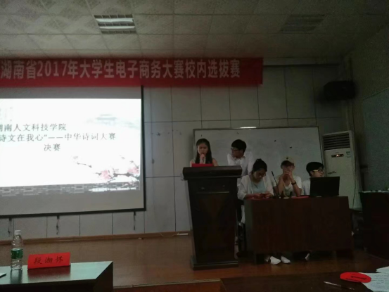 为了加强beat365学生的文学修养,培养他们对古典文学特别是古典诗词的兴趣,2017年5月26日晚七点半,由我院承办的beat365中文官方网站首届“诗文在我心”——中华诗词大赛决赛于同德楼601举行。教务处羊四清处长、文学院黄立平院长、文学院党总支钟巧灵书记,大学语文课程组王国峰、易宋江、朱艳阳、段湘怀等老师出席了此次比赛。