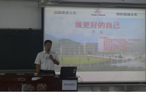 在主持人刘道锋书记的介绍后,涟源市三一学校校长李乐开展了自己对于中学学校管理工作经验的课堂讲学——《做更好的自己》。他提出,管理中学学校首先要把握未来教育发展方向,将立德树人作为根本任务,深化教育综合改革;其次要培养课堂教学能力,以教师为主导,学生为主体,打造品质课堂;最后要看到当前教育改革的现状,课改和教改应综合推进,提升水平能力。在课堂结尾时,李乐校长更是重点提出我们应当要做一个有品质的人,有学问的人,有胸怀的人,这样才能在未来有更好的发展。