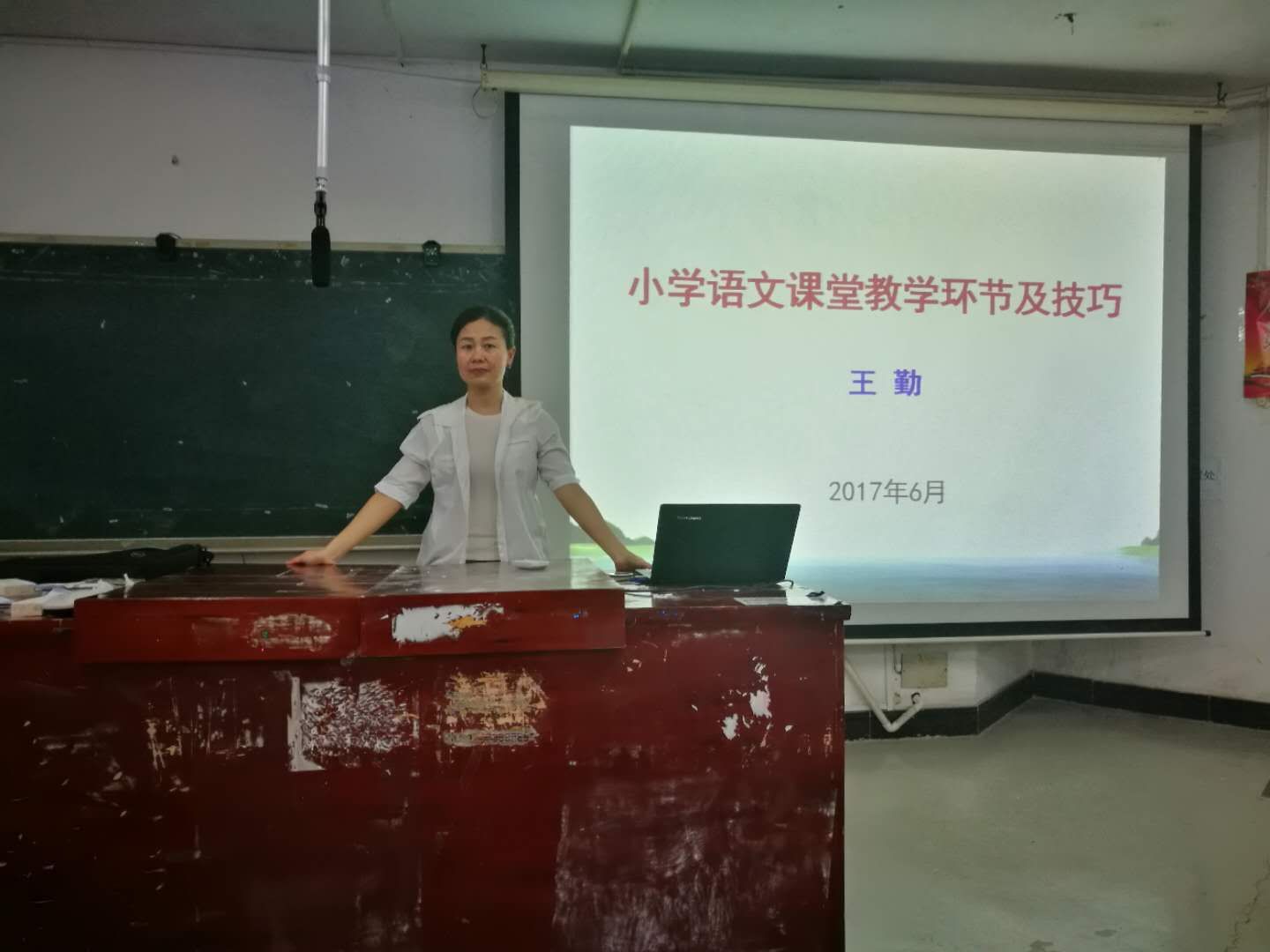 上午由王向阳院长的主持,首先由王勤老师作《小学语文课堂教学环节与技巧》的专题讲座。王勤老师在讲解语文课堂教学环节的过程中,着重讲解了每个环节的教学技巧,最后总结归纳语文课堂教学的五个步骤。