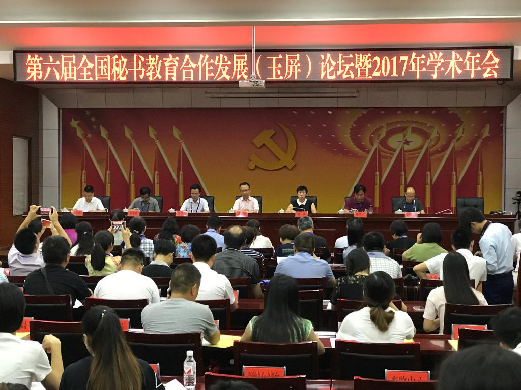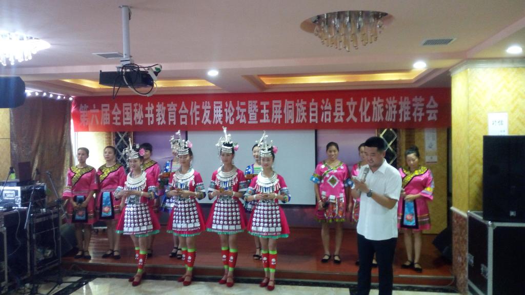 为了深入推进秘书专业建设,助推秘书学专业教学研究与改革,提高秘书学专业人才培养质量,使秘书学专业能更好地为地方经济社会的发展服务,由商务部中国对外贸易经济合作企业协会全国外经贸从业人员考试中心、中国职业技术教育学会国际商务教育委员会主办的第六届秘书教育合作发展论坛暨2017年学术年会72930日在贵州玉屏侗族自治县隆重举行。商务部中国对外贸易经济合作企业协会副会长、全国外经贸从业人员考试中心主任郑樑、玉屏侗族自治县人民政府副县长姚芬、玉屏侗族自治县相关领导、来自全国各院校秘书专业的负责人和骨干教师60多人参加了此次盛会。