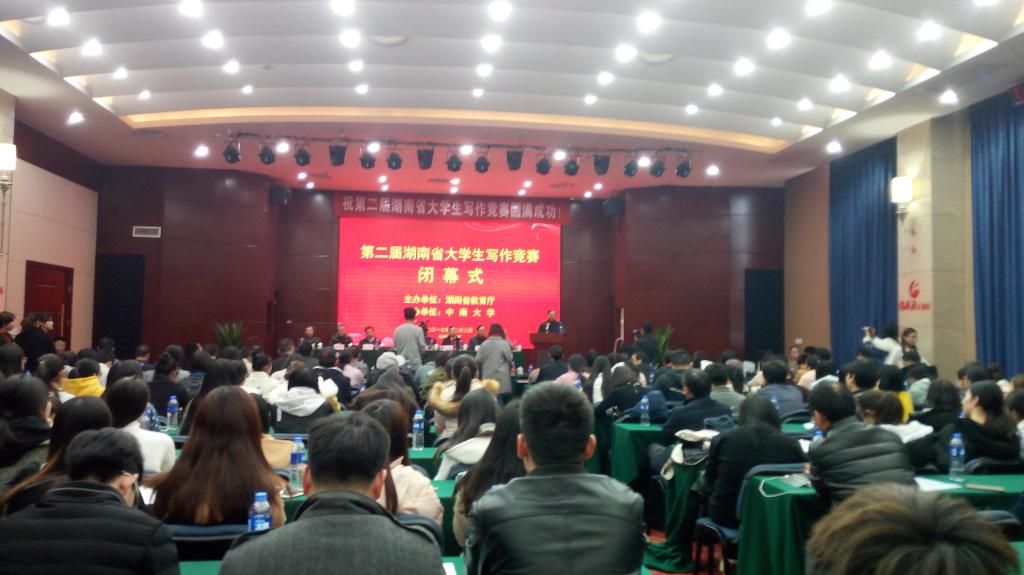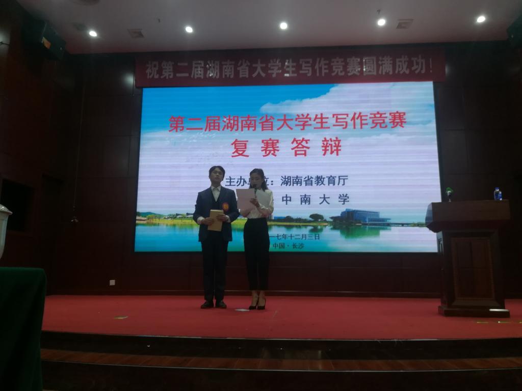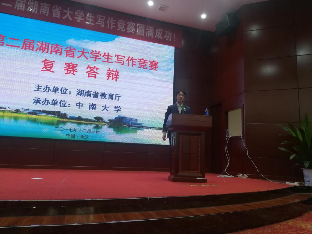 湖南省大学生写作竞赛由省教育厅主办,是目前省内中文专业唯一的学科竞赛。大赛以培育人文精神、传承文学经典、提升专业能力、强化专业教学效果为目的,对推动中文专业教学改革,提高学生实践能力尤其是写作水平,提升学生审美能力有重要意义,省教育厅和各高校对赛事都十分重视。本届比赛由中南大学文新学院承办,中南大学、湖南大学、湖南师大、湘潭大学、长沙理工等29所设有中文专业的高校参赛,参赛选手共145名,大赛设一等奖12名。