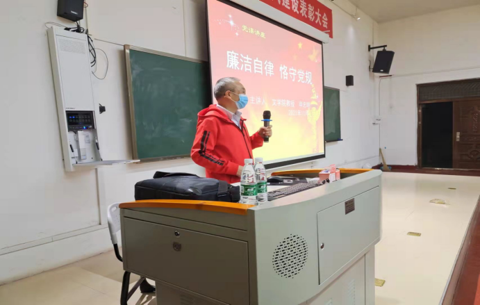 为端正入党动机、促进入党积极分子从思想、行动上争取入党,文学院联合体育学院举办了发展对象培训班,2021年11月18日申忠明教授在博达楼115教室为大家带来了第一课《廉洁自律恪守党规》。