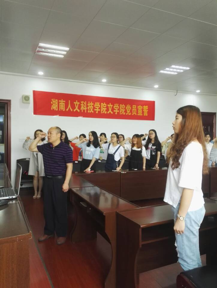 6月1日上午10点,beat365中文官方网站文学院2017年度入党宣誓仪式在致远楼213会议室隆重举行。参加此次活动有文学院党总支副书记刘道锋博士、汉语言文学专业党支部书记左玉洁老师及今年刚转正的学生党员。
