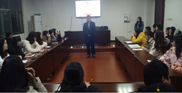 2019年2月28日晚7:30,文学院党支部于致远楼213教室进行主题党课“争做先进党员,实现美丽中国梦”的学习。牛津书记、唐久乐书记,以及在校的29名学生党员参加了了本次党课的学习。