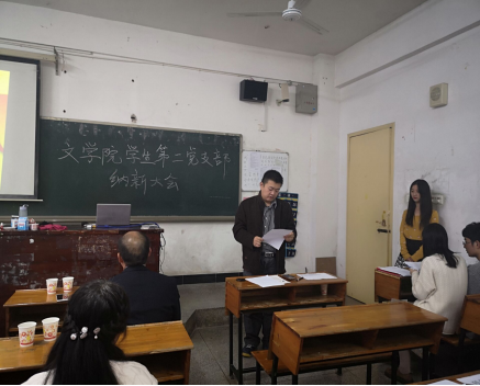 2018年11月27日,文学院学生第二支部委员会于致远楼216召开了纳新大会。出席会议的人员有:刘道锋博士、李亚珍老师、牛津书记以及五名正式党员,十一名预备党员、七名发展对象。