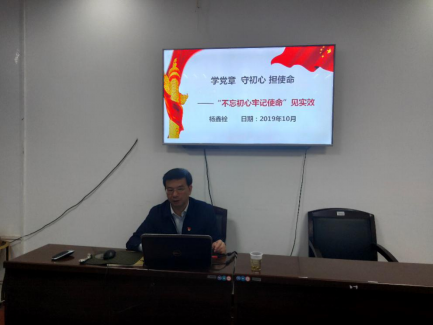 10月22日下午,学校纪委书记杨鑫铨在致远楼213以“学党章、守初心,担使命”为主题,为文学院全体师生党员讲述了一堂生动深刻的主题党课。。