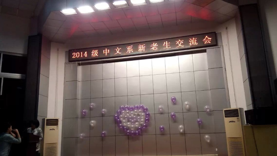 2014年11月4日19:30,由中文系学生会学习部主办的中文系2014级新老生交流会暨迎新晚会在匠成楼报告厅隆重举行。中文系党总支书记黄立平教授、党总支副书记刘道锋博士、牛津老师、叶红老师出席了此次晚会,院学生会主席团、各系学生会分会主席、院系学生会学习部长以及我系14级新生共同参与了此次晚会。