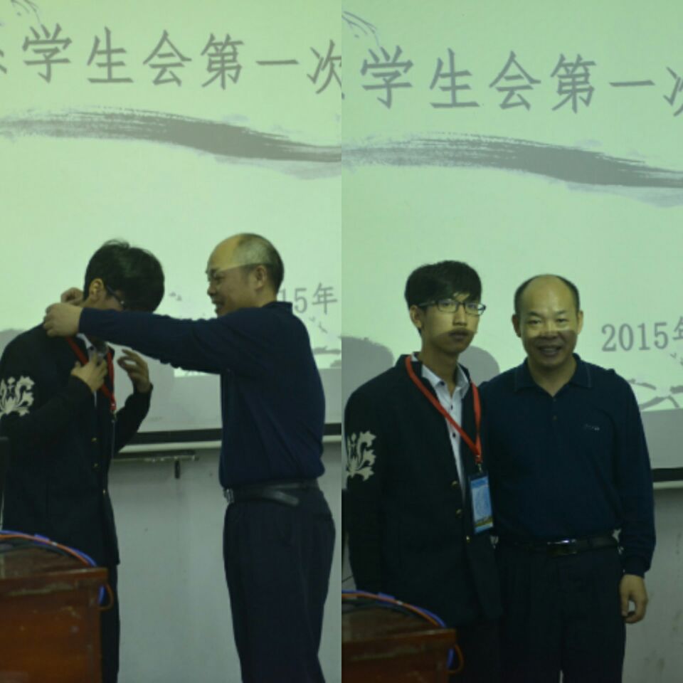 其次,会议进行第二项议程:颁发工作证。由刘道锋博士为吴新春主席颁发工作证,叶红老师、王文静老师分别为各个部长颁发工作证。